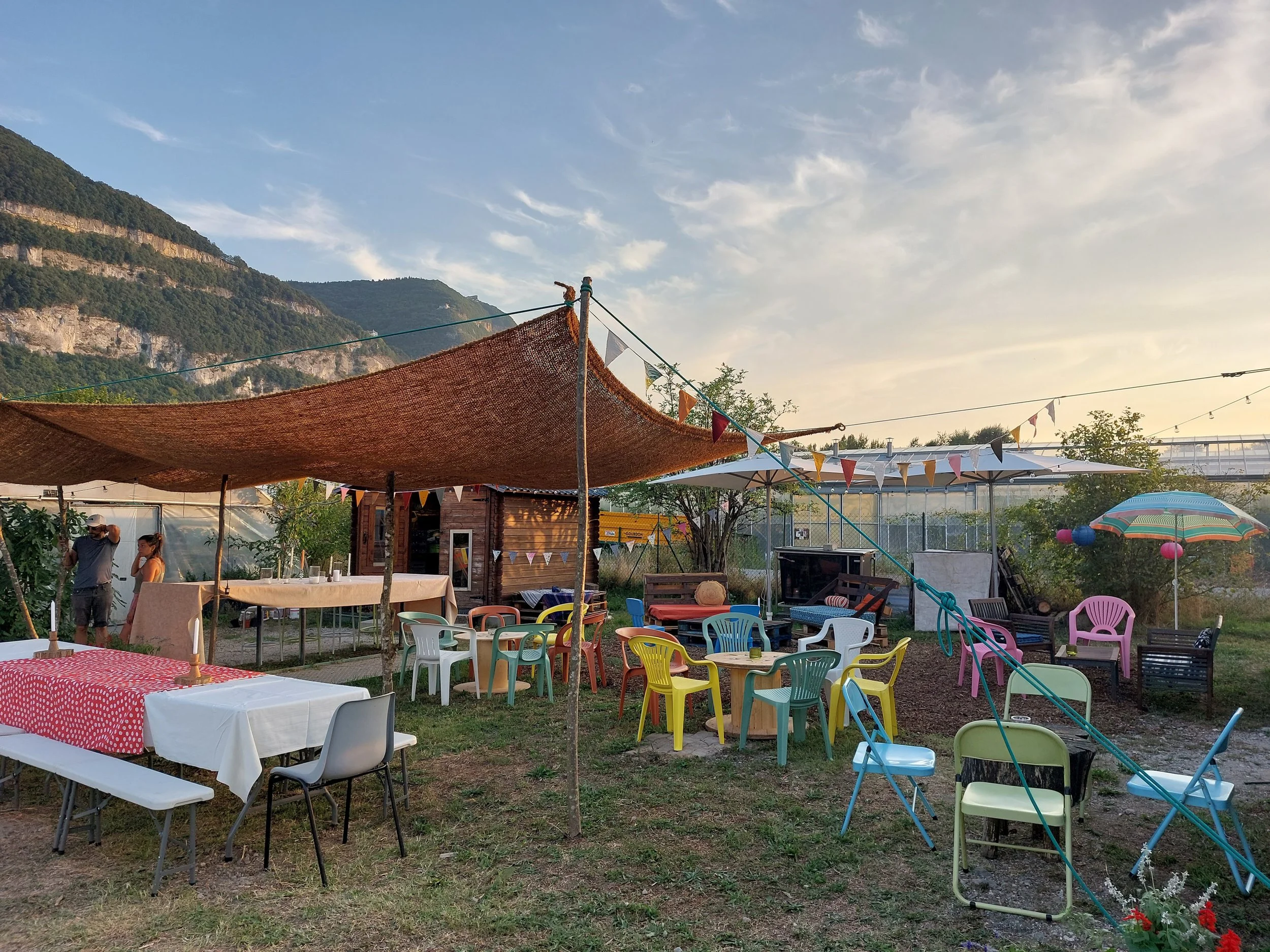 L’été, notre guinguette transforme le jardin en lieu de vie : repas de saison, boissons fraîches, musique, animations et ambiance conviviale.